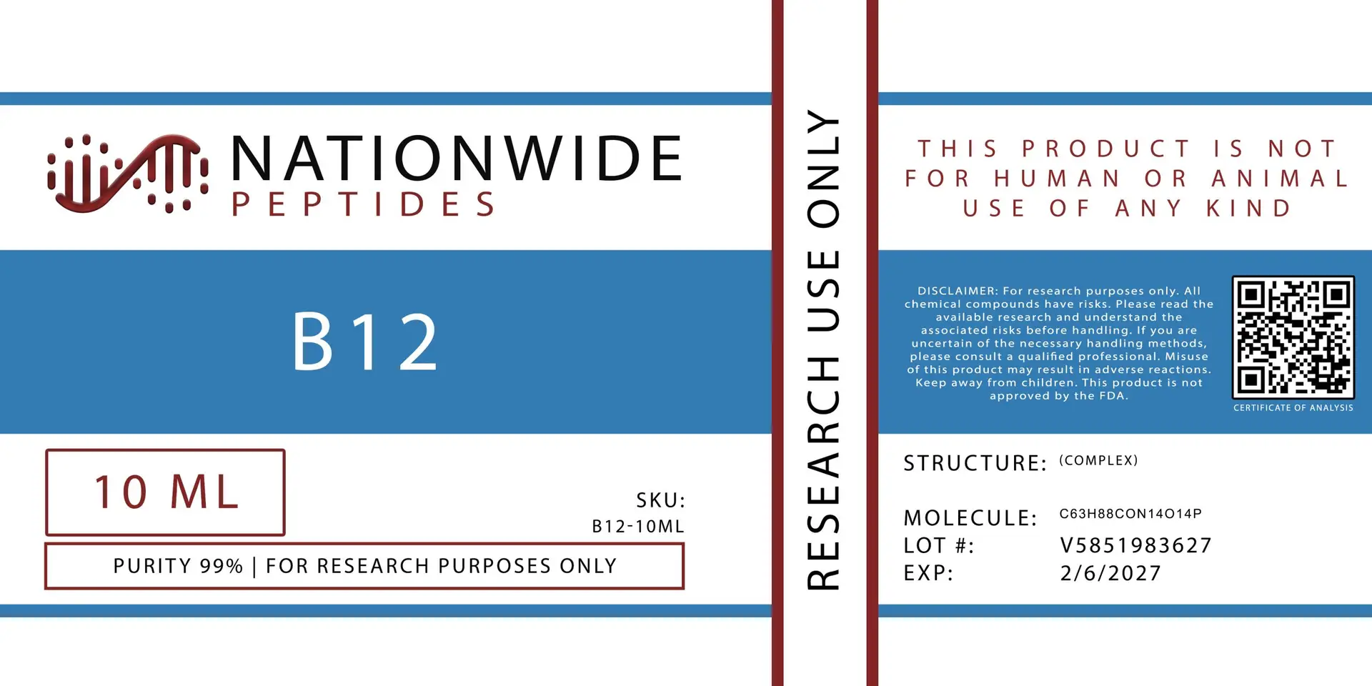 Engineered solely for preclinical investigations, each batch of Vitamin B12 undergoes a comprehensive quality assessment and includes complete documentation, including a Certificate of Analysis (COA), purity data, and structural verification.
