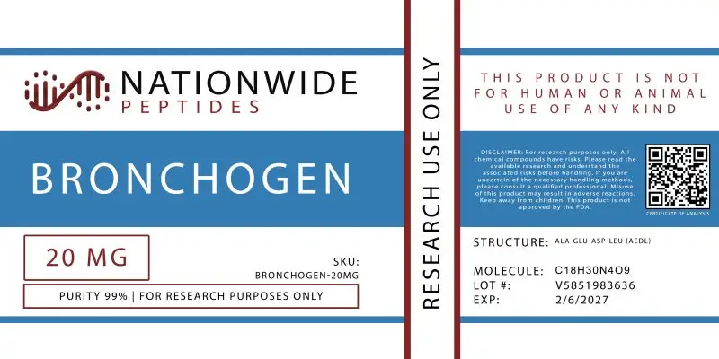 For laboratories requiring dependable Bronchogen research peptide, our manufacturing process prioritizes reproducibility and scientific precision. Every batch is confirmed for: