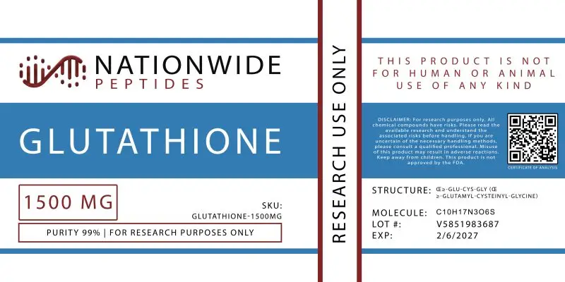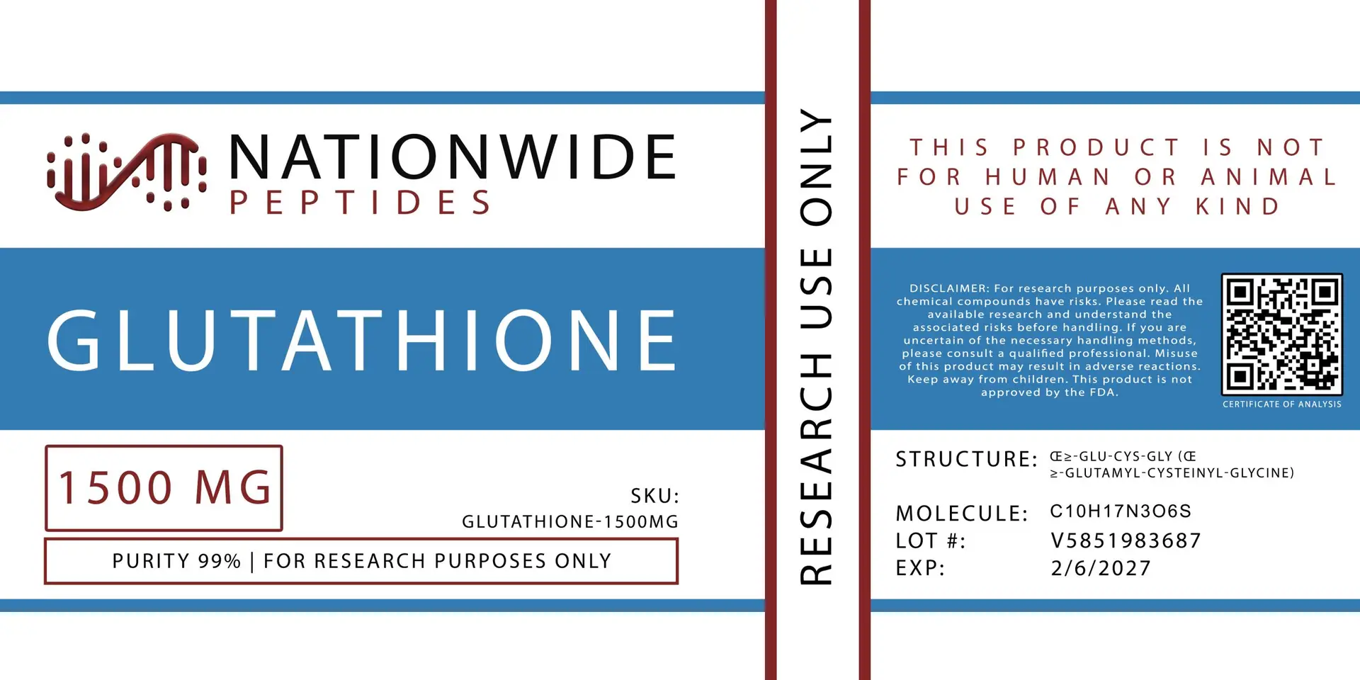 Glutathione (GSH) is the most abundant non-protein thiol in mammalian cells. This reduced γ-linked tripeptide (L-γ-glutamyl-L-cysteinyl-glycine) is a well-characterized molecule that has been extensively studied in the context of redox biology. As documented in the peer-reviewed literature, GSH serves as a cofactor for glutathione peroxidase (GPx) and glutathione S-transferase (GST), and plays a central role in cellular redox homeostasis (ncbi.nlm.nih.gov, pmc.ncbi.nlm.nih.gov). This research-grade lyophilized powder is produced under strict quality standards and includes full analytical documentation, making it suitable for in-vitro oxidative stress, redox signaling, and detoxification pathway research.