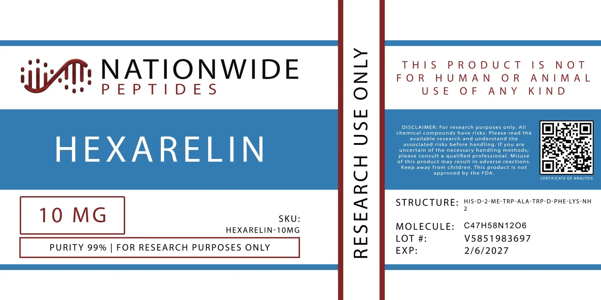 - High-purity Hexarelin Acetate (≥98% by HPLC/MS, acetate salt form)