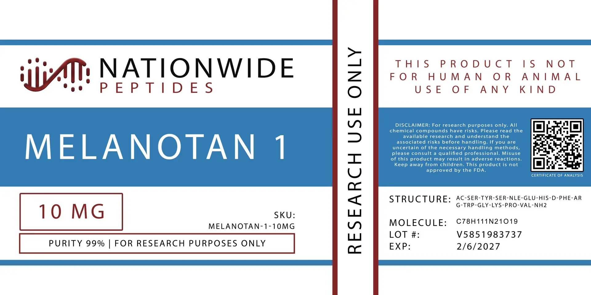 Engineered solely for preclinical investigations, each batch of Melanotan 1 receives a comprehensive quality assessment and includes complete documentation, such as a Certificate of Analysis (COA), purity data, and structural verification.