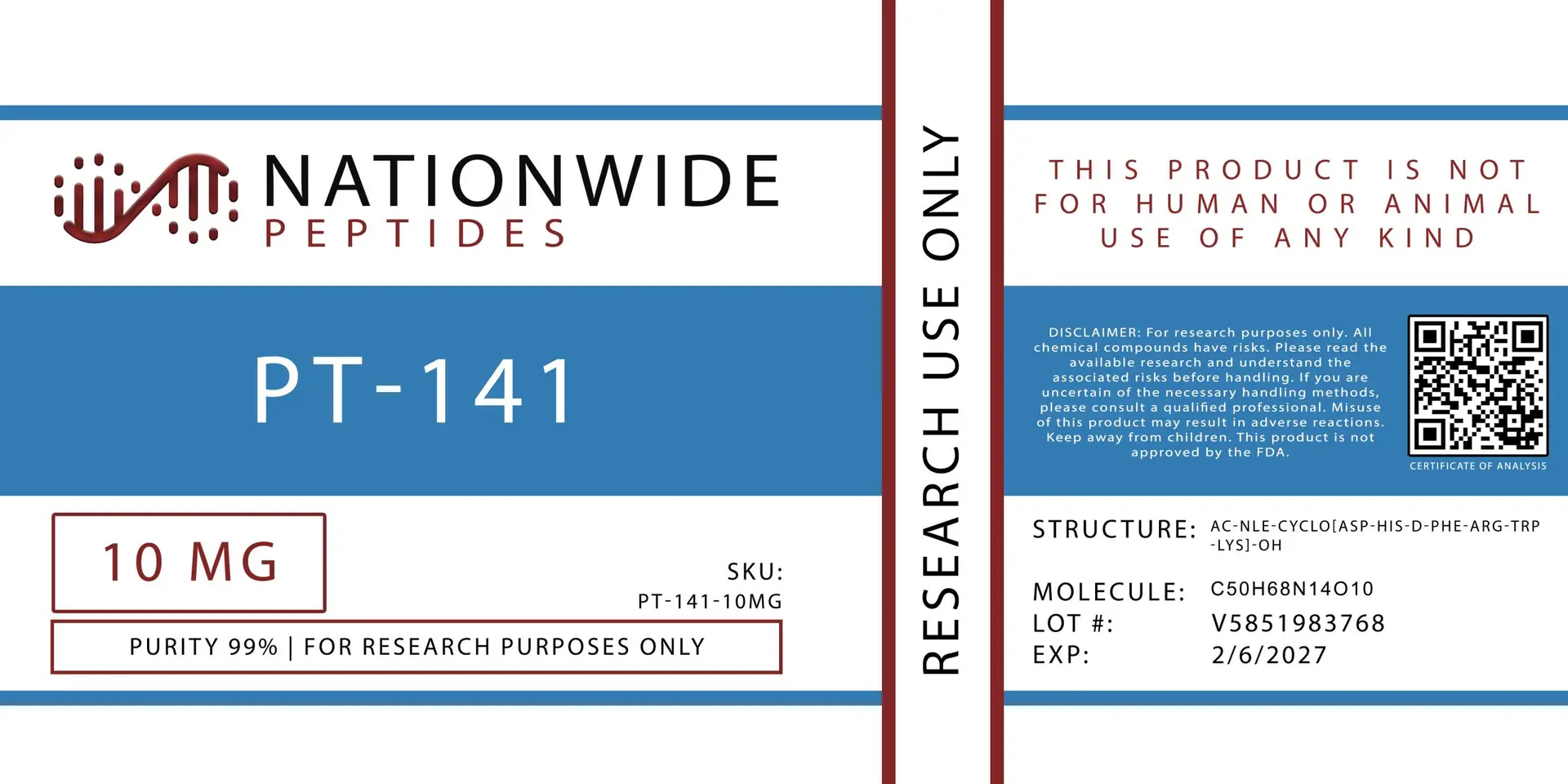 • High-purity PT-141 (≥ 98% by HPLC/MS, acetate salt form)