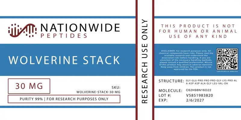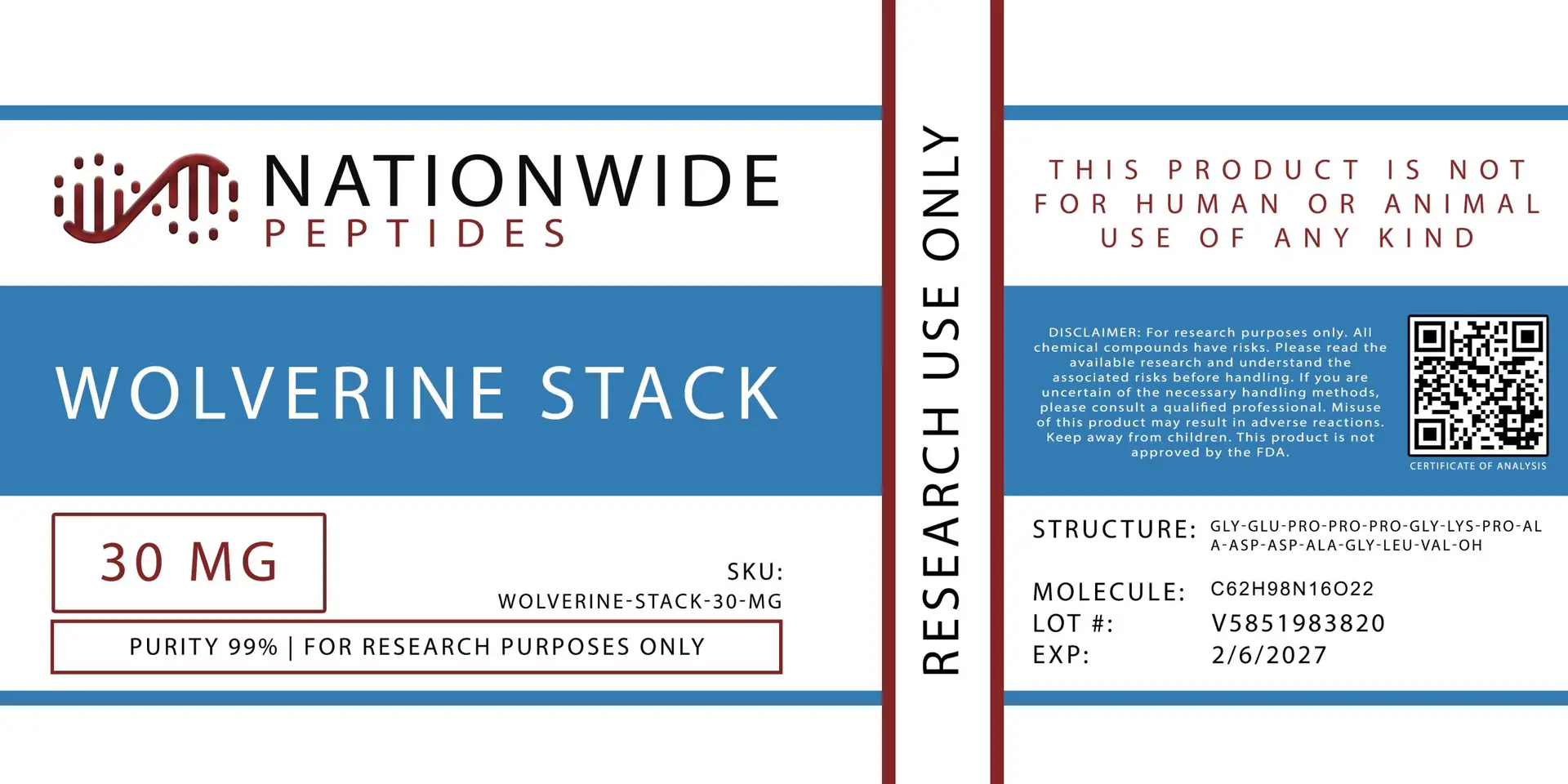 Wolverine Blend is a research blend combining two studied peptides for use in controlled laboratory settings (For Research Use Only. Not for human use.):